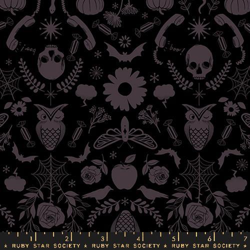Halloween is our designers’ favorite holiday, and they went old school with this collaborative collection! The designs in this collection are based off of Victorian Era Halloween ephemera, with classic iconography from our designers’ past collections. We also brought back glow in the dark pigment! This collection has a wonderful damask print from Melody Miller, an amazing Halloween costume print from Rashida Coleman Hale, expressive cats from Sarah Watts, and so many other cool prints! Plus, we added some adorable Mini Starry prints in classic Halloween colors!